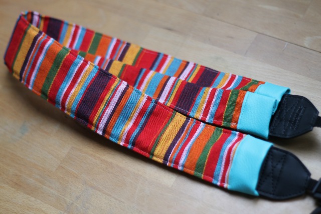 Und zwar handelt es sich, wie unschwer erkennbar, um einen Kameragurt-Bezug. So ein Gurt sieht ja meistens ein wenig langweilig aus, schwarz und öde, aber das kann man ganz einfach ändern!