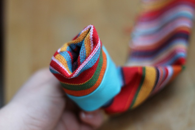 Tipp: Versucht zwischendurch schonmal, den Gurt durch den Schlauch zu ziehen, um zu sehen, wie viel oder wenig Platz am Rand bleibt. Das kann später hilfreich sein.