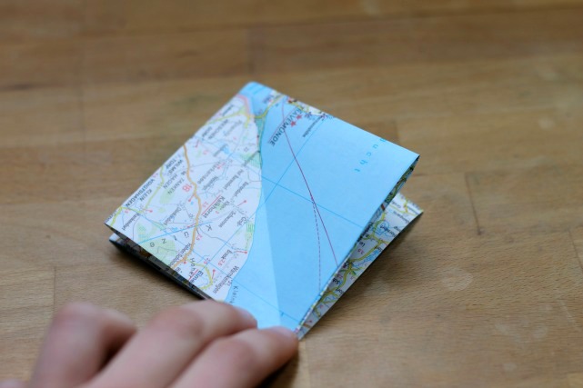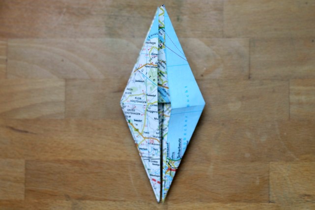 Jetzt müsste das Papier wie hier gefaltet vor euch liegen. Alle Seiten ordentlich festdrücken und die Kanten gut falten.