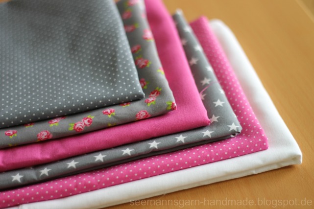 Die Stoffauswahl hat mich selber etwas überrascht. Geplant waren einfarbige Stoffe in Türkis- und Blautönen und dann war ich im Laden und ja.. es entwickelte sich irgendwie anders. Mir ist dann nämlich diese Stoffkombination ins Auge gefallen und fand die so herrlich niedlich. Eigentlich gar nicht so meine Farben, aber in diesem Fall und als Patchworkdecke – ja, kann ich mir gut vorstellen! 🙂