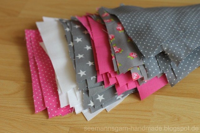 Nun sind die Dreiecke ausgeschnitten, die Finger lahm vom Schneiden und dann kann bald genäht werden. Ich freue mich, yaayy!
